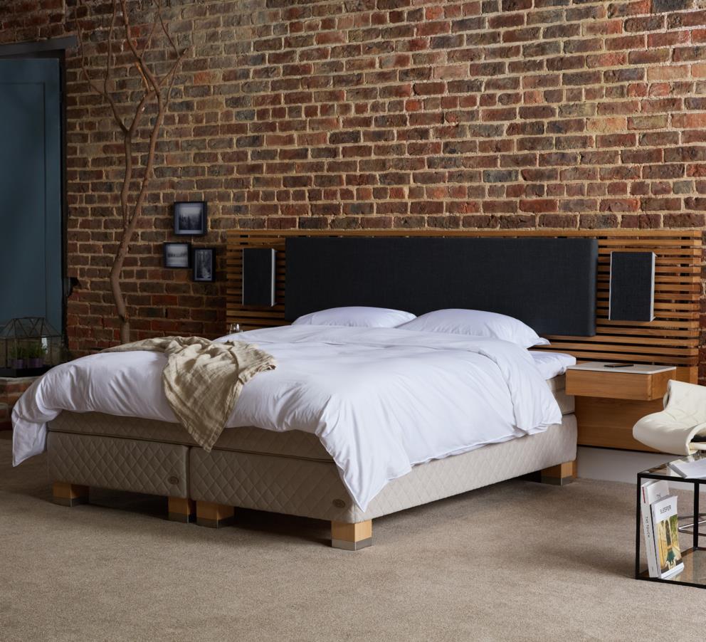 Was ist das Ergebnis, wenn Sie zwei renommierte skandinavische Marken kombinieren? Eine akribische Fusion von Form und Funktion. Das Bang & Olufsen Kopfteil für DUX Kontinentalbetten vereint innovative Audiotechnologie mit einem eleganten Design für zusätzlichen Komfort.