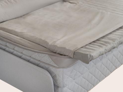Die Deckplatte der Matratze lässt sich mit Reißverschlüssen öffnen, um Ihnen den Zugang zu den sechs austauschbaren Pascal-Kassetten freizulegen, drei auf jeder Seite. Sie können die Kassetten entsprechend Ihrer Körpergröße, Körperform und Ihren Anforderungen anordnen.