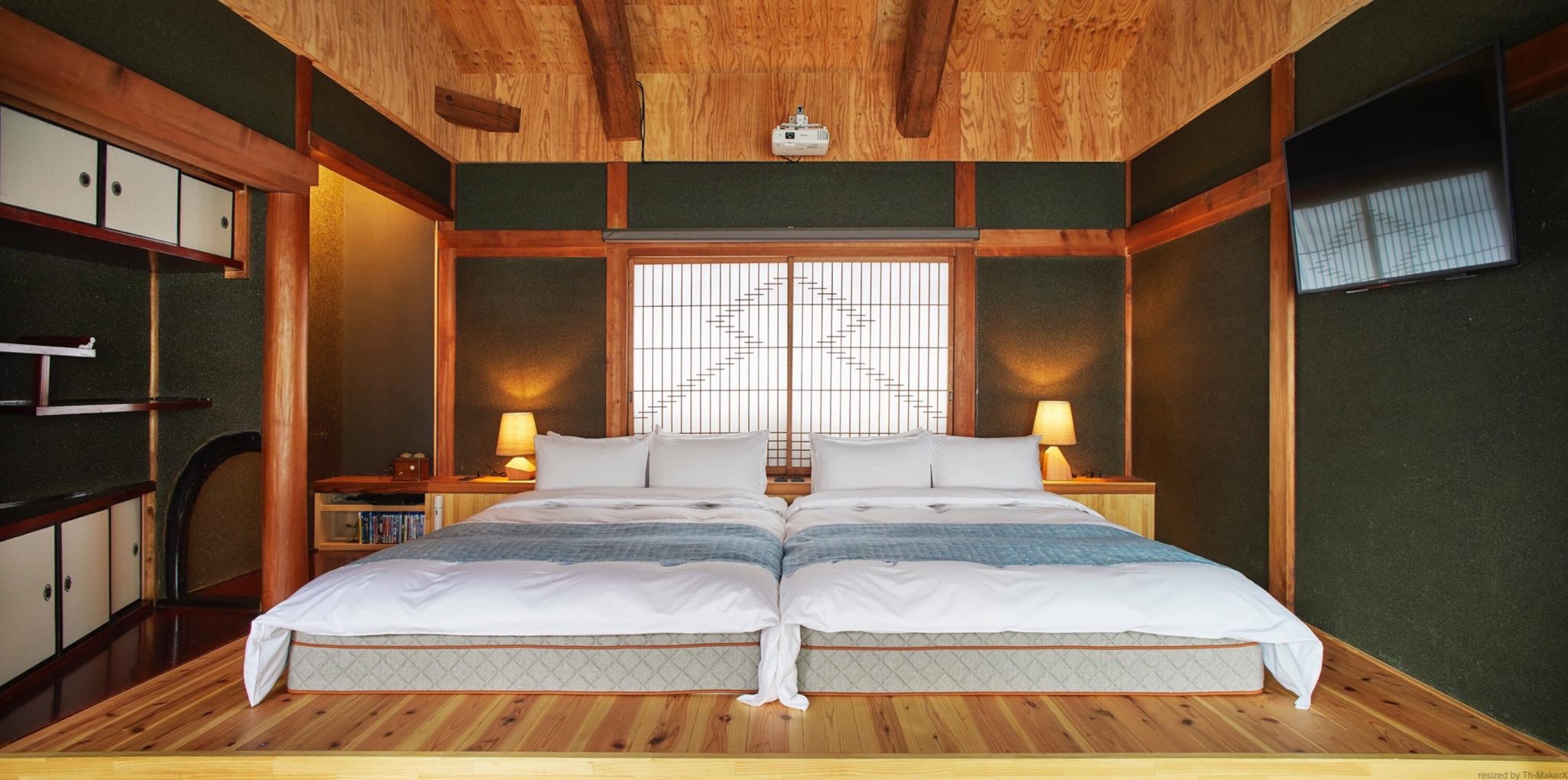 Hier können Sie in einem traditionellen Haus einen Hauch von Luxus genießen; der Aufenthalt ist pro Tag auf nur eine Gruppe beschränkt. In dem renovierten traditionellen Haus aus dem Jahr 1957 mit einer modernen und entspannten Atmosphäre haben Sie Zugang zu einem Badezimmer aus Zypressenholz, kostenlosem WLAN, einer Küchenzeile, einem Projektor zum Ansehen von Filmen, einem Originalverstärker und -Lautsprecher, zahlreichen Annehmlichkeiten und raffinierten Yukata, damit Sie sich entspannen, etwas Luxus genießen und sich wie zu Hause fühlen können. Im ersten Stock befindet sich ein Café, in dem Sie ein frisch zubereitetes Frühstück mit regionalen Zutaten genießen können.