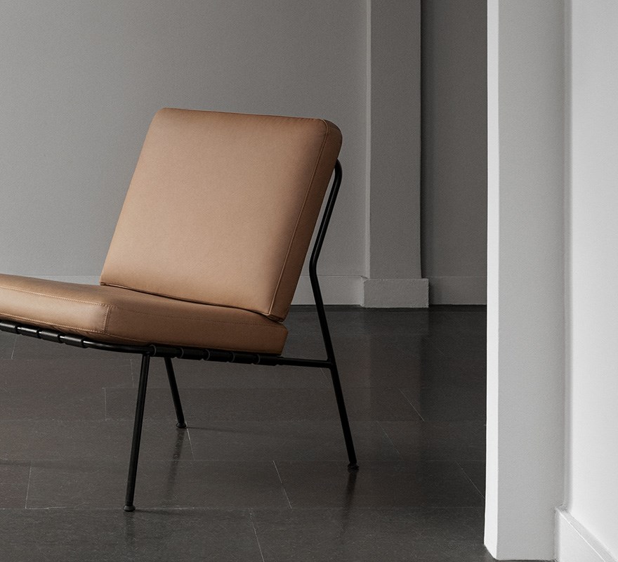 2020 hauchte das dänische Design- und Architekturbüro Norm Architects dem legendären Sessel Domus während der Stockholm Design Week neues Leben ein. Zwei Sessel wurden neu gestaltet und durch einen neuen Fußhocker und einen Beistelltisch ergänzt. Norm Architects wurde 2008 in Kopenhagen von Jonas Bjerre-Poulsen und Kasper Rønn gegründet. Seitdem hat sich das Unternehmen zu einem der angesagtesten Studios Dänemarks entwickelt. Es ist bekannt für Architektur, Inneneinrichtung und Industriedesign, das auf Einfachheit, Qualität, Nachhaltigkeit und Zeitlosigkeit basiert. Als DUX Norm einlud, unser Archiv nach Inspirationen für eine neue Kollektion zu durchsuchen, konzentrierte sich das Studio auf die Domus-Sessel. Diese Sessel, einer aus Holz und einer aus Stahl, wurden ursprünglich von Alf Svensson für die H55, die Internationale Ausstellung in Helsinki von 1955, entworfen.
