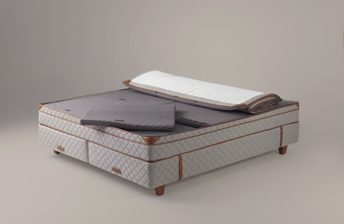 Je nach Größe des Bettes enthält das Pascal-System bis zu sechs Kassetten, die gemäß den drei Komfortzonen des Körpers unterteilt sind – Schultern, Hüfte und Beine. Jede Zone kann weich, mittel, fest oder extra fest konfiguriert werden, sodass das Bett an individuelle Bedürfnisse angepasst werden kann.