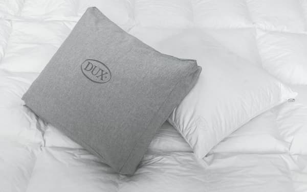 DUX Xleep – eine weitere Innovation von DUX. Durch das Federsystem bewahrt das Daunenkissen über viele Jahre hinweg seine ursprüngliche Form und Elastizität und fühlt sich besonders kühl und komfortabel an.