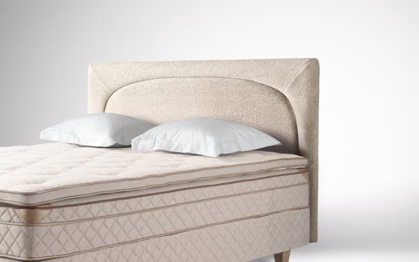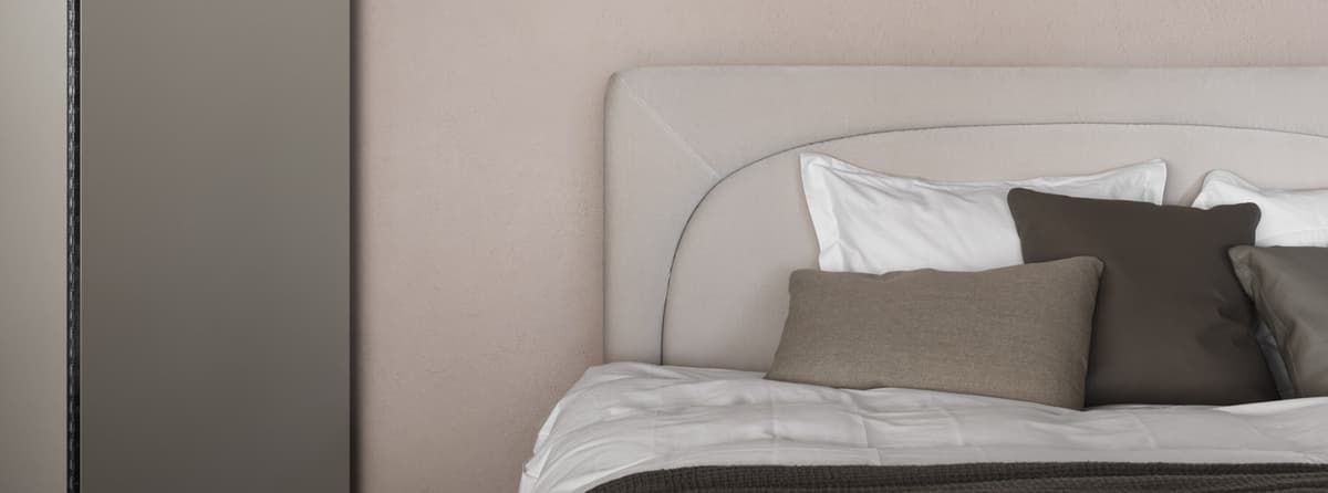Das Eden ist ein weiches, gepolstertes Kopfteil für das DUX-Bett, dessen Charakteristikum ein schlichter, aber dennoch kunstvoll geformter Bogen ist.