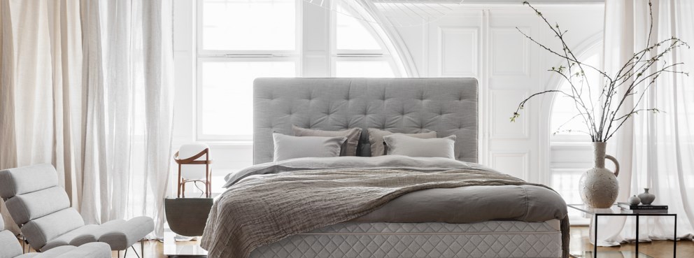 DUX Royal ist eine Serie von ergänzendem Bettzubehör wie Bettüberzügen und dekorativen Kissen. Das Design wurde in Zusammenarbeit mit dem legendären Hotel d’Angleterre in Kopenhagen entwickelt. Ein Kopfteil mit bequemer, stützender Polsterung. Das klare Design basiert auf der traditionellen Tiefheftung, und die Produkte sind mit oder ohne Knöpfe erhältlich.