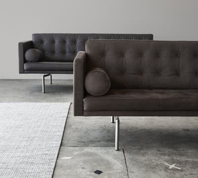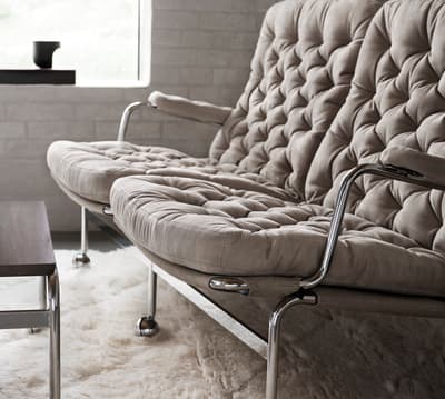 Ein perfekt dimensioniertes 2-Sitzer-Sofa auf Basis des klassischen Sessels „Karin 73“, der sich leicht bewegen lässt.