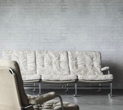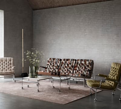 Ein perfekt dimensioniertes 3-Sitzer-Sofa auf Basis des klassischen Sessels „Karin 73“, der sich leicht bewegen lässt.
