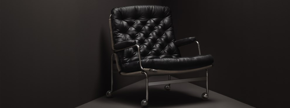Der Sessel Karin 73 aus dem klassischen Bruno Mathsson-Designsortiment bietet mit seinem fein verchromten Rahmen und der gesteppten Polsterung eine elegante Sitzgelegenheit.