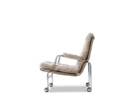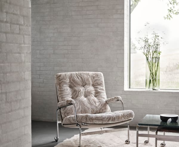 Der Sessel Karin 73 aus dem klassischen Bruno Mathsson-Designsortiment bietet mit seinem fein verchromten Rahmen und der gesteppten Polsterung eine elegante Sitzgelegenheit.