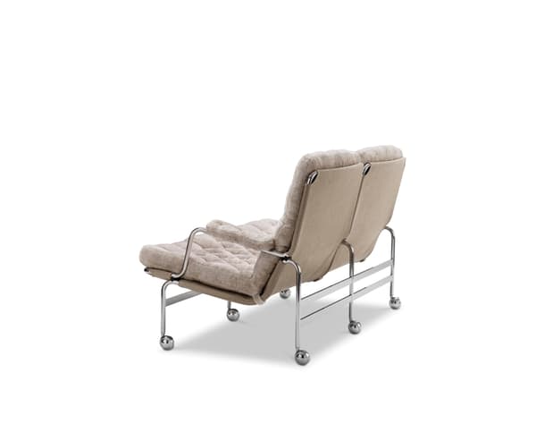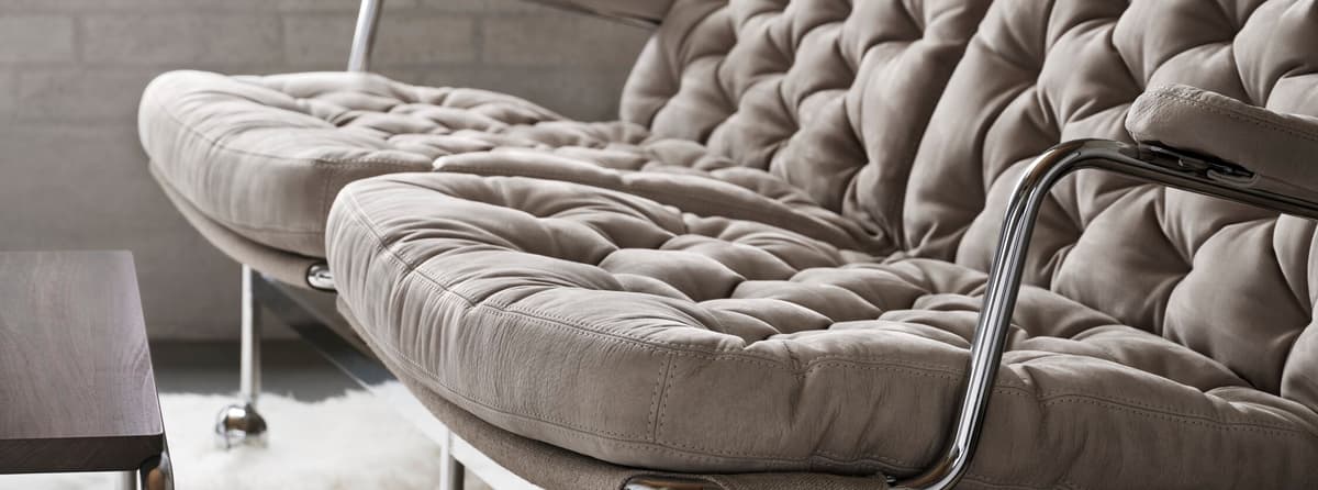 Karin 73 ist ein elegantes 2-Sitzer-Sofa im klassischen Design mit einem edel verchromten Rahmen und gesteppter Polsterung.