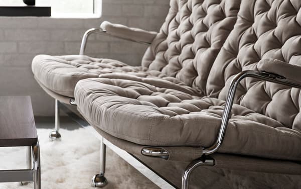 Ein perfekt dimensioniertes 2-Sitzer-Sofa auf Basis des klassischen Sessels „Karin 73“, der sich leicht bewegen lässt.
