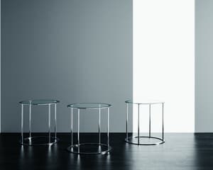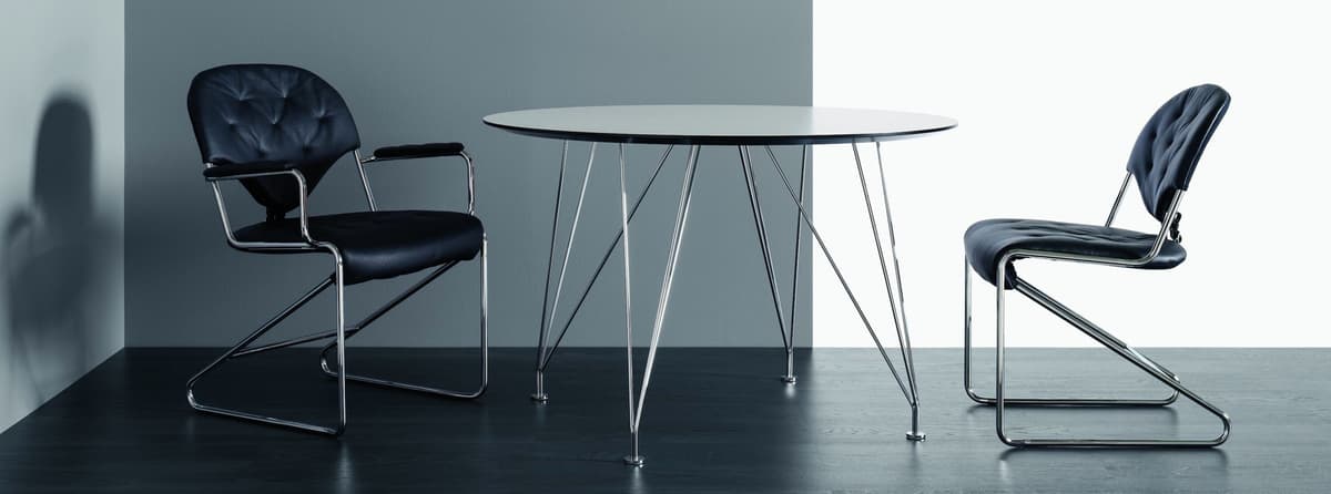 Ein klassischer runder Tisch in verchromter Ausführung mit Glasplatte.