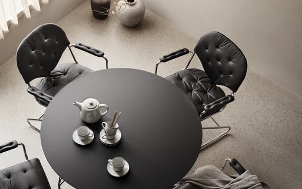 Ein runder Esstisch, der die Gäste zu anregenden Gesprächen einlädt und den Augenkontakt fördert. Auch als Esstisch oder Esstisch mit zwei ausziehbaren Sektionen erhältlich.