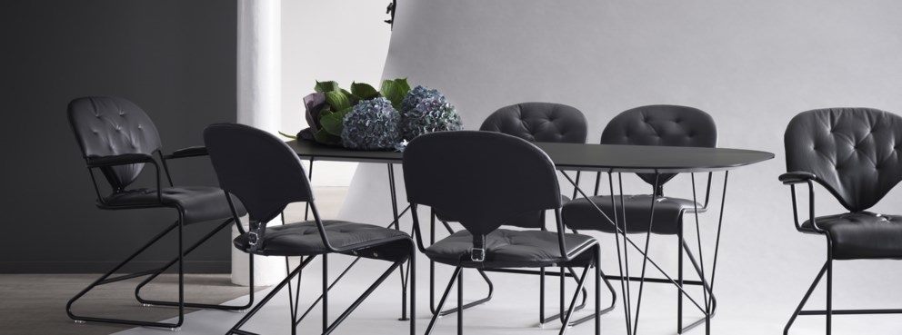 Ein ovaler Esstisch, der die Gäste zu anregenden Gesprächen einlädt und den Augenkontakt fördert. Auch in zwei weiteren Ausführungen erhältlich, als Esstisch mit zwei ausziehbaren Tischplatten und als kleinerer Cafétisch.