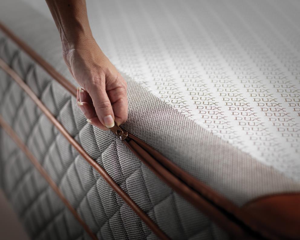 ![]()  DIE DUX-KOMPONENTENSTRATEGIE Ersetzen, erneuern und wiederherstellenDank unserer Komponentenstrategie können Sie einzelne Teile austauschen, erneuern oder mit einem Upgrade versehen. Die DUX-Auflage ist nicht fest am Bett befestigt. Die Deckplatte der Matratze lässt sich mit Reißverschlüssen öffnen, um Ihnen den Zugang zum anpassbaren Pascal-System zu ermöglichen. Die beiden Boxspring-Bases sind außerdem voneinander unabhängig. Da wir unsere Betten so gestalten, dass sie ein Leben lang halten, bieten wir Ihnen die Möglichkeit, einzelne Komponenten bei Verschleiß zu erneuern. Wir wollen, dass Sie im Laufe der Jahre auf weitere verfügbare innovative Lösungen zugreifen können, um Ihr Erlebnis fortlaufend zu verbessern.