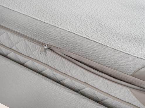Die Deckplatte der Matratze lässt sich mit Reißverschlüssen öffnen, um Ihnen den Zugang zu den sechs austauschbaren Pascal-Kassetten freizulegen, drei auf jeder Seite. Sie können die Kassetten entsprechend Ihrer Körpergröße, Körperform und Ihren Anforderungen anordnen.